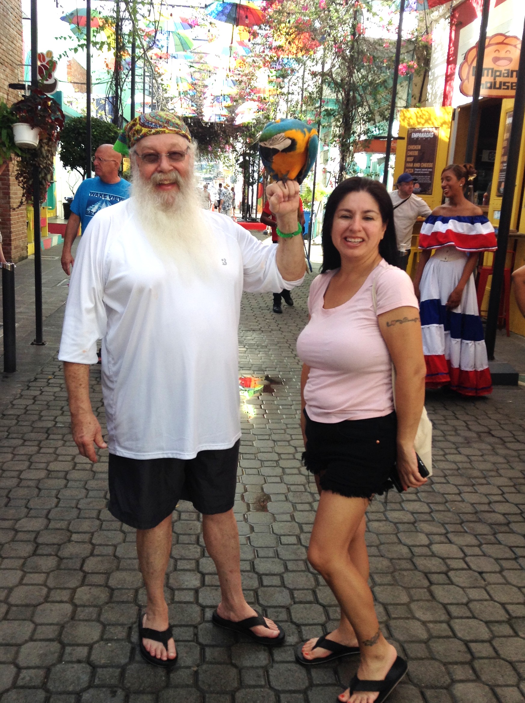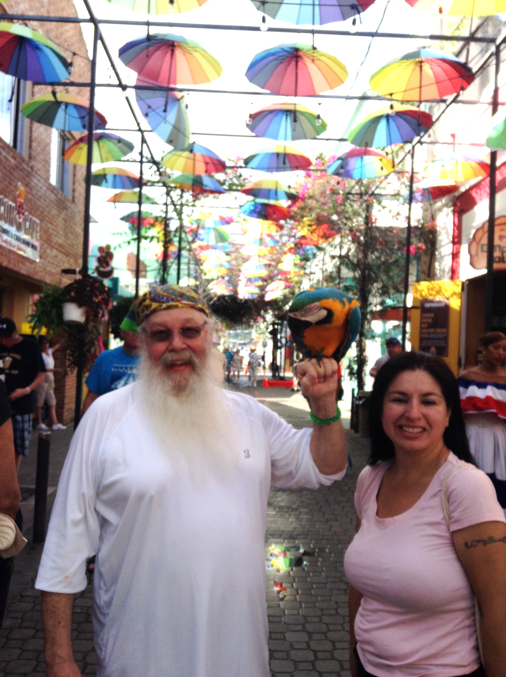 We found Umbrella St. Then an entrepreneur appeared with a macaw and an offer. Pics and video with macaw $1.00
