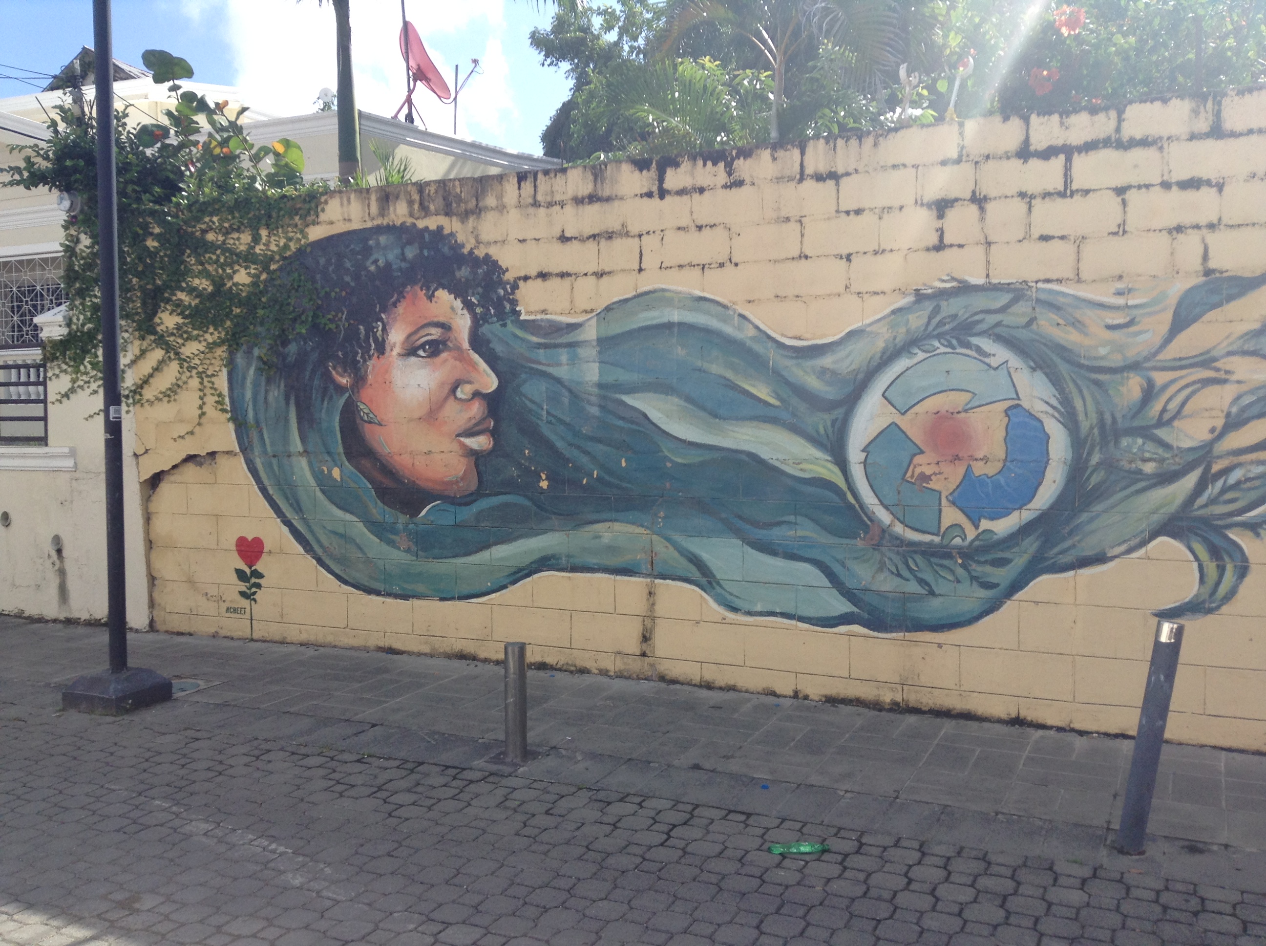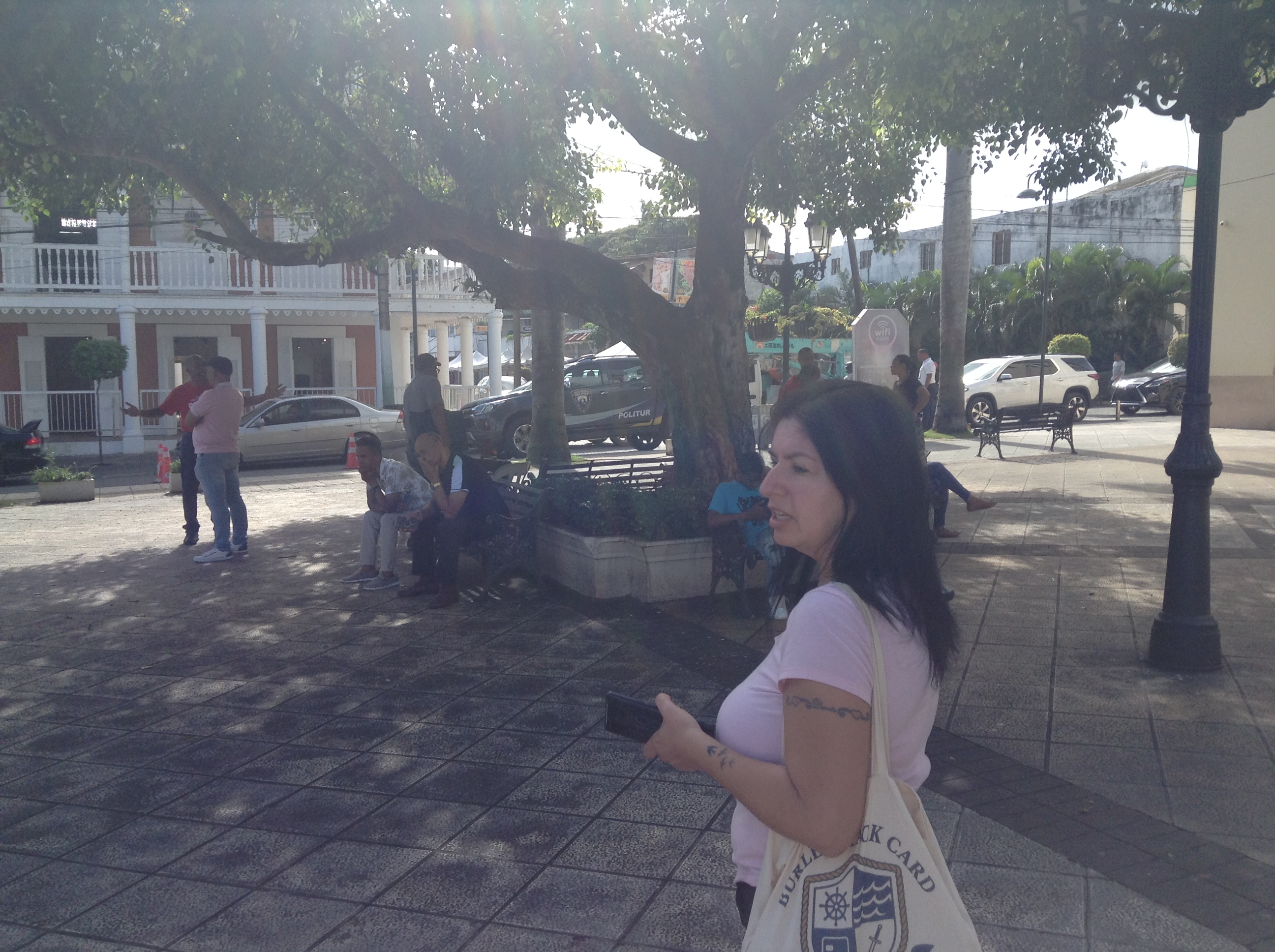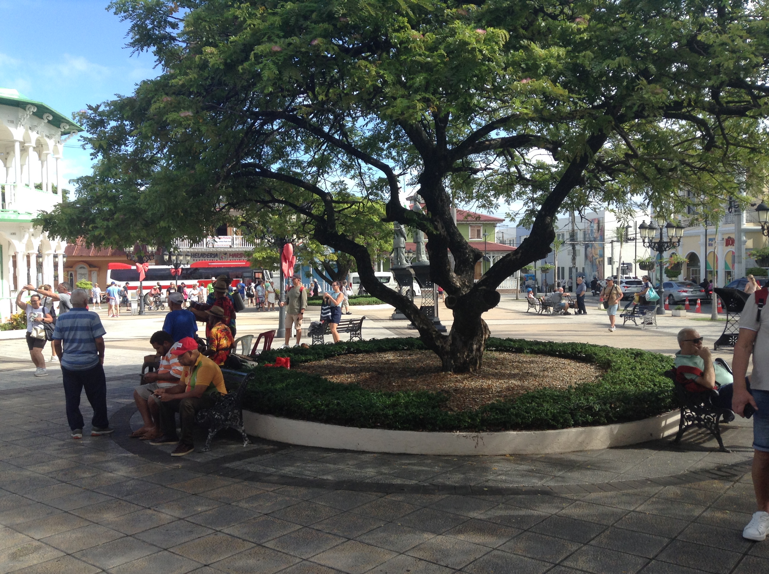 Well that took damn near 10 minutes just to get to the taxi stand. Helluva installation. Bars, shops, water rides, and restaurants abounding. I join a group of likeminded people from the ships who are looking to go downtown. A couple of people say they are going to the church in the town square. Seems like a good start. I start talking to a nice lady who was also kinda tagging along with this group. She introduces herself as today's cruise ship local, Julie. She is representing for siblings and her young daughter and solo. Since I was too we pair up to explore. Julie has lived in Puerto Rico and around the US. We walk. First stop Umbrella St.