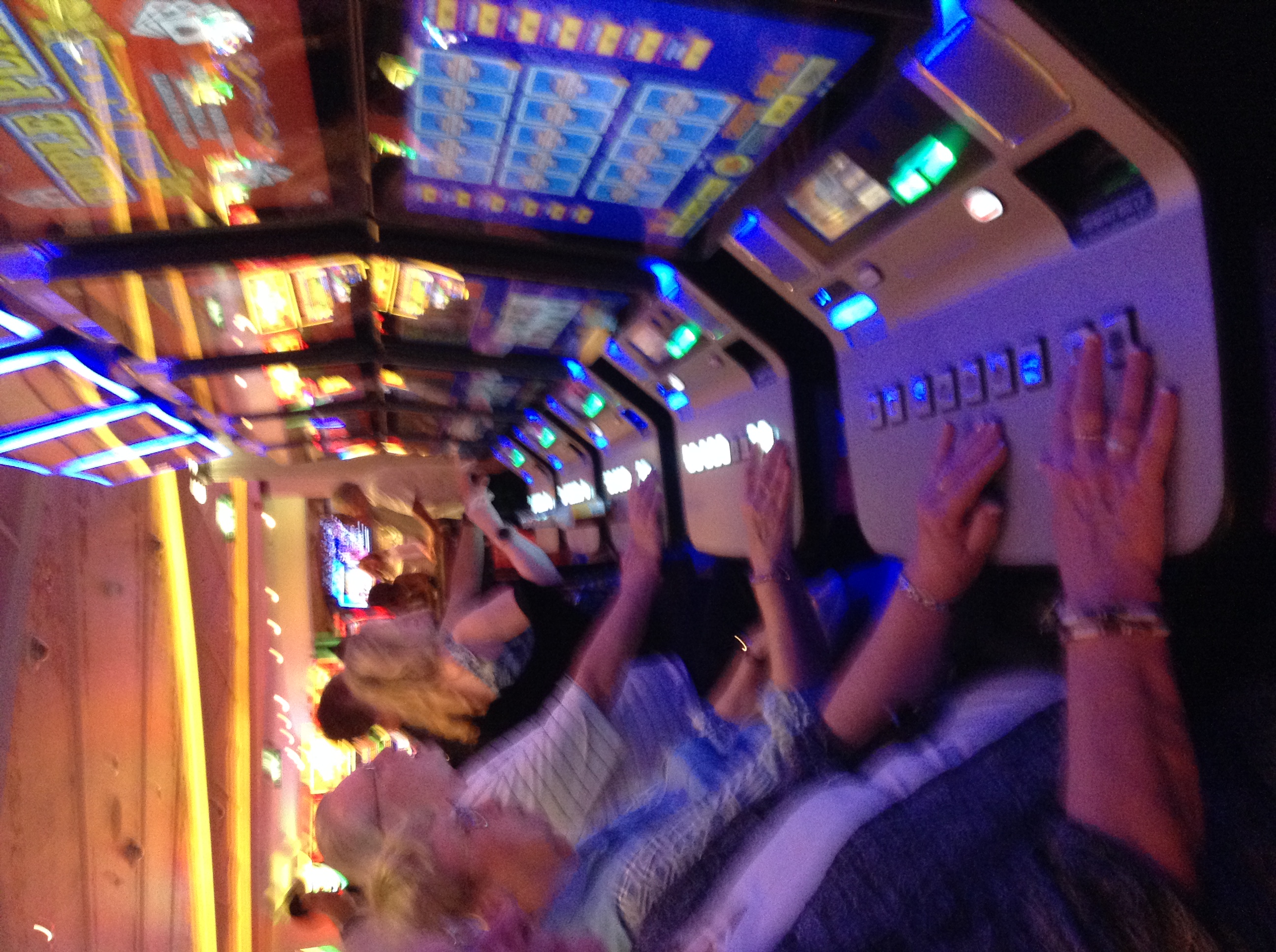 Well, there's no line so we march straight up to the player's club and are quickly helped. Friendly folk around this here joint! We need to earn a few points and then come back and get some free play. We did and scored 45. free play between us. Noice!