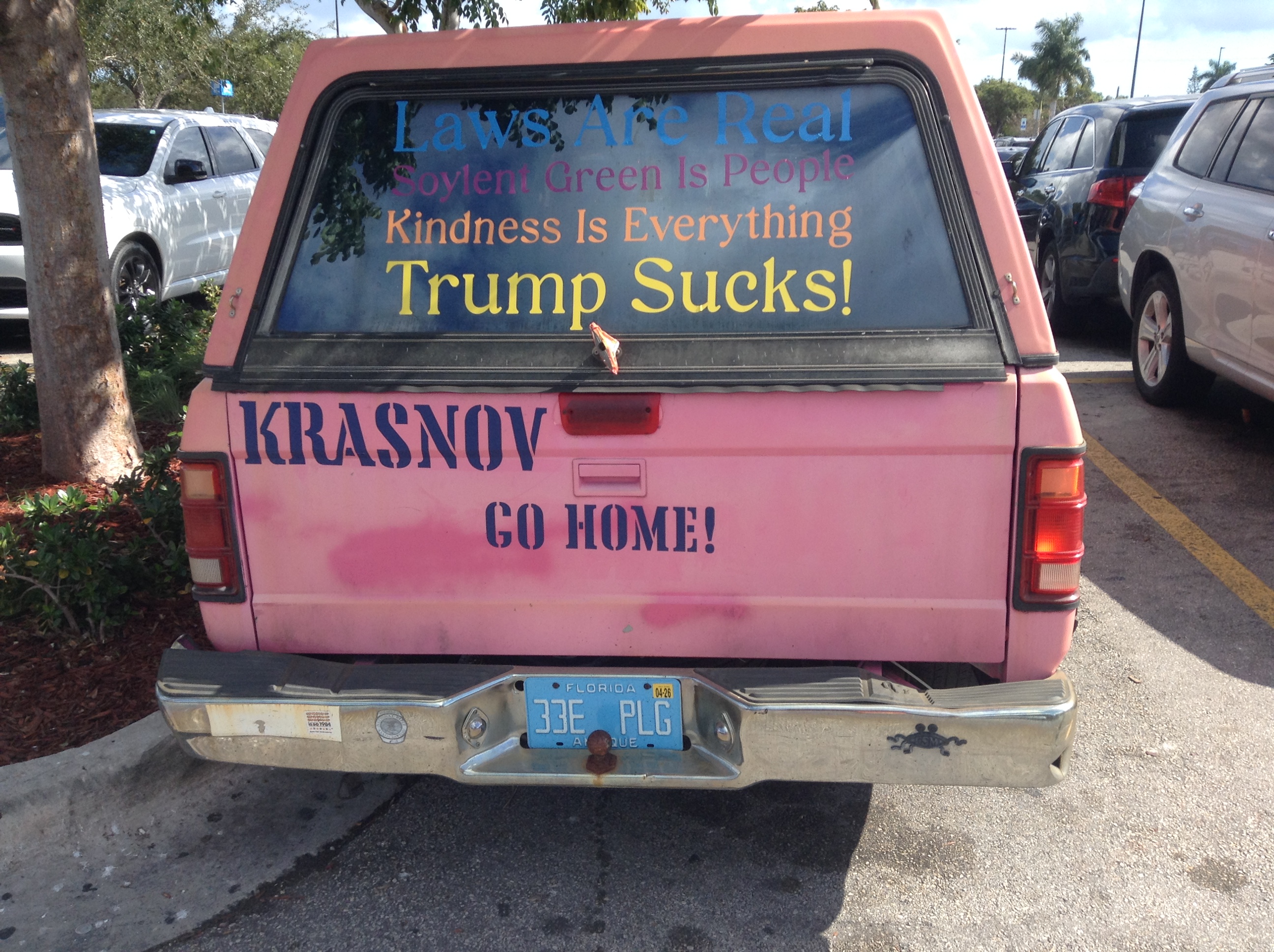 And off we go! Our plans are to see Sweet Ti's old Workmate Marie François (Maggie) today and see our dear old friends the Toczynski's tomorrow. Maggie lives over near Lake Okeechobee and Zig & Bo are in Boynton Beach. So I split the difference and booked us a room at a boutique hotel in Lake Worth Beach called the Palm Breeze. Got a killer rate thru AARP Expedia. They are currently doing reno on the rooms. Maybe we will get lucky. The traffic up I-95 wasn't too bad and Sue the GPS found our abode for the next couple of days in a rather charming residential area in Lake Worth. Kinda has an old school Florida feel to the neighborhood. I find the office and check in with a most pleasant lad. Being as it's around noon, our room isn't ours yet. We go to Plan 9 from Outer Space. We are planning on meeting Maggie for lunch and so Sweet Ti calls to tell her that we are on our way to The Original Mario the Baker. It's clos to her house so it's an easy drive for her. Turned out to be a good call. Great pie, friendly service and a very casual atmosphere. We visited for hours.