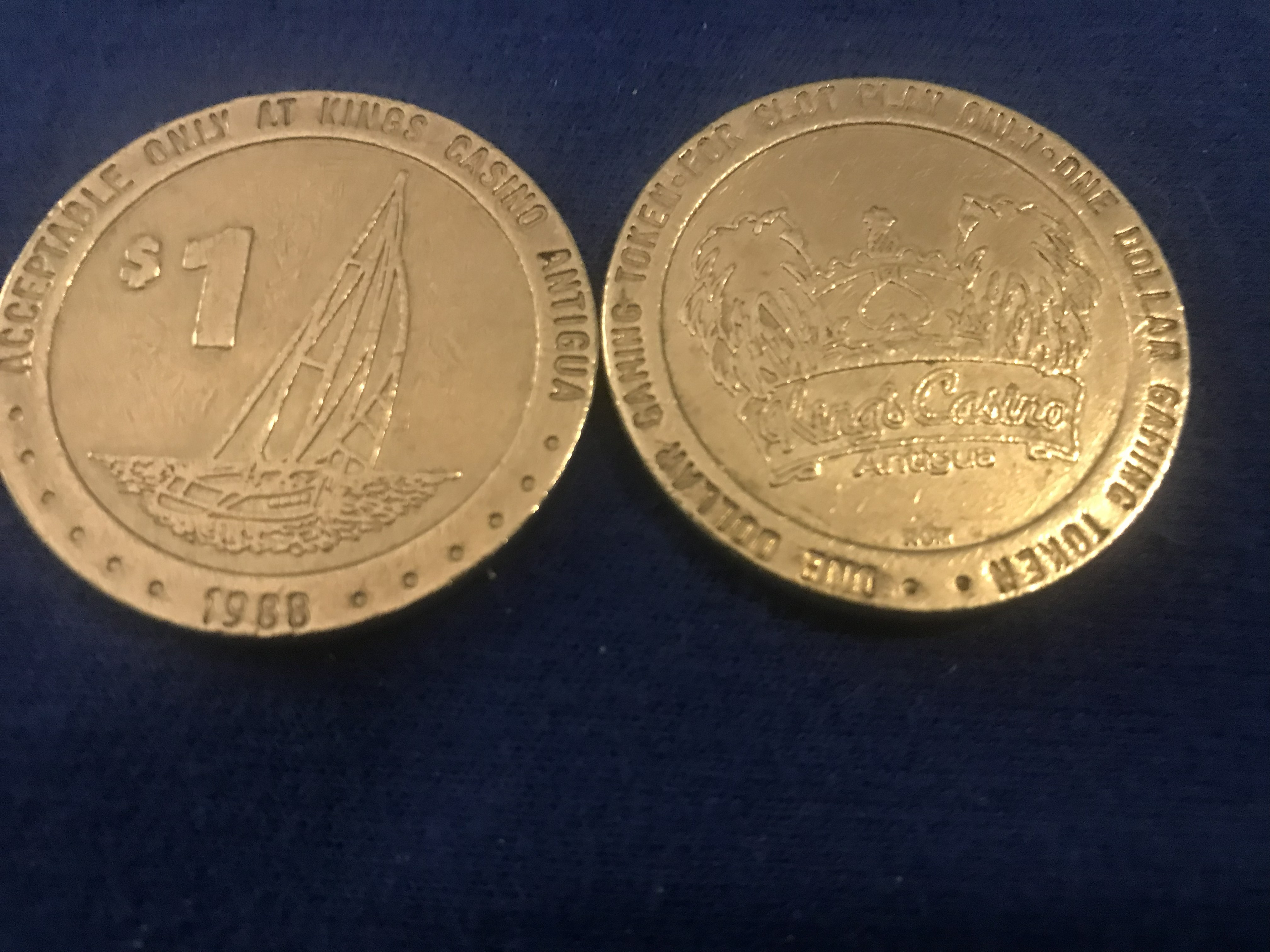 As I was passing one of these numerous entrances to King's Casino I was approached by a shill for the joint. He offered me a dollar gaming token. Yepper, just what I collect. Seeing that I was pleased, he handed me another. These are really nice tokens. 1987 and 1991 vintage. I thanked him profusely and walked into the casino.