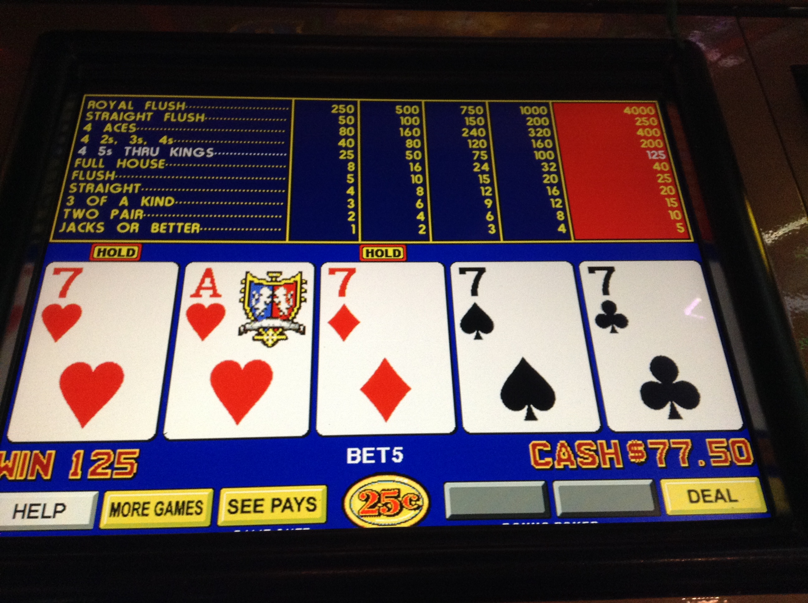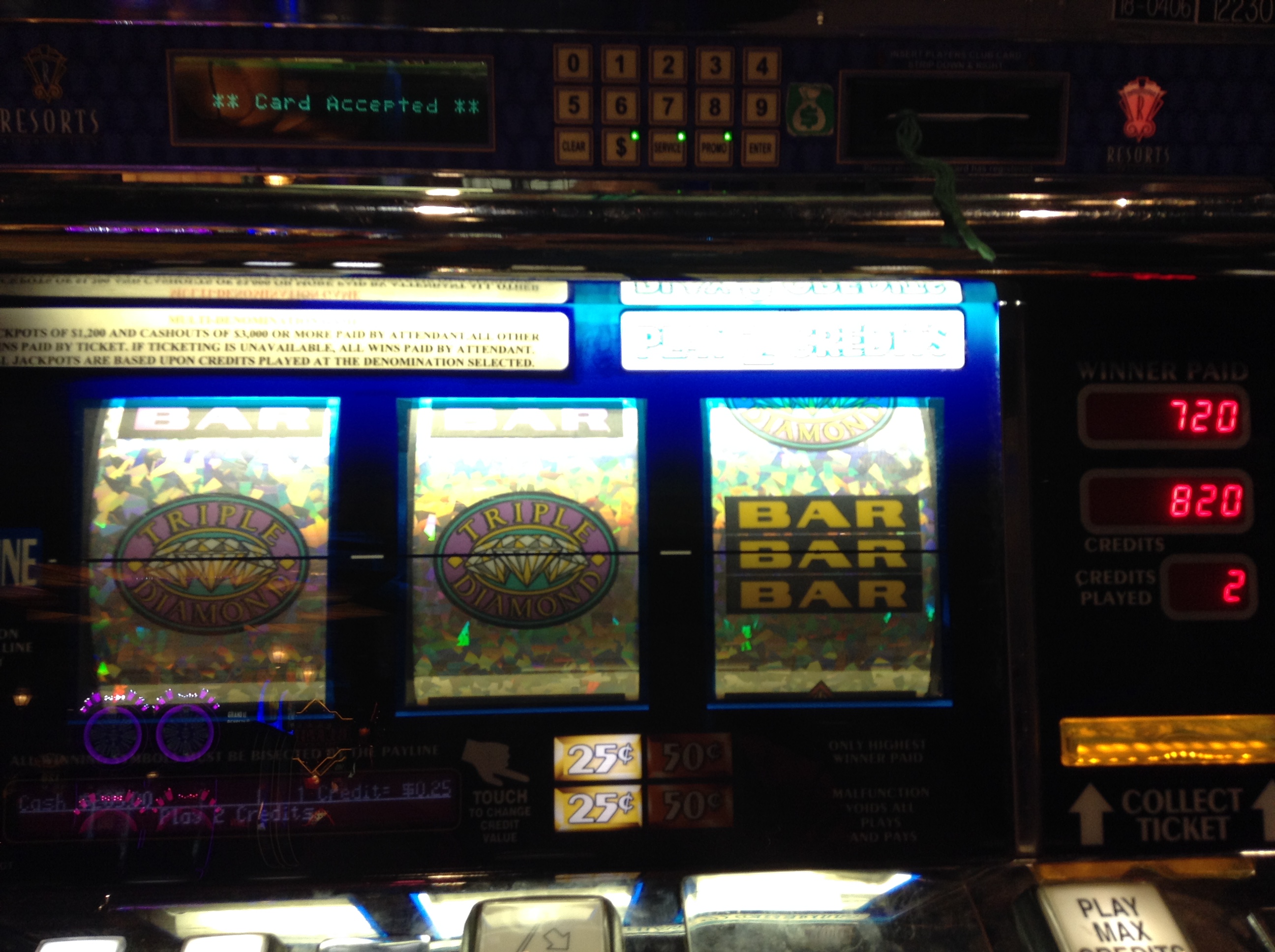 Hey Now! I awoke at 6:20, kissed Sweet Ti farewell, and headed to a kiosk. One was actually working, which is good because they are offering 3x comps today. That taked care of, I insert coin into a .50 TripDiaDeluxe.