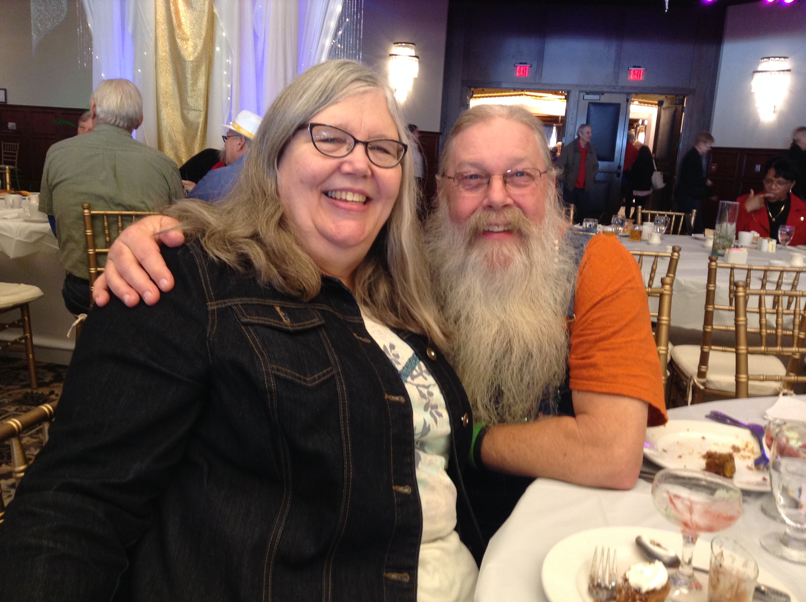 as gussied up as an old hippie couple can.